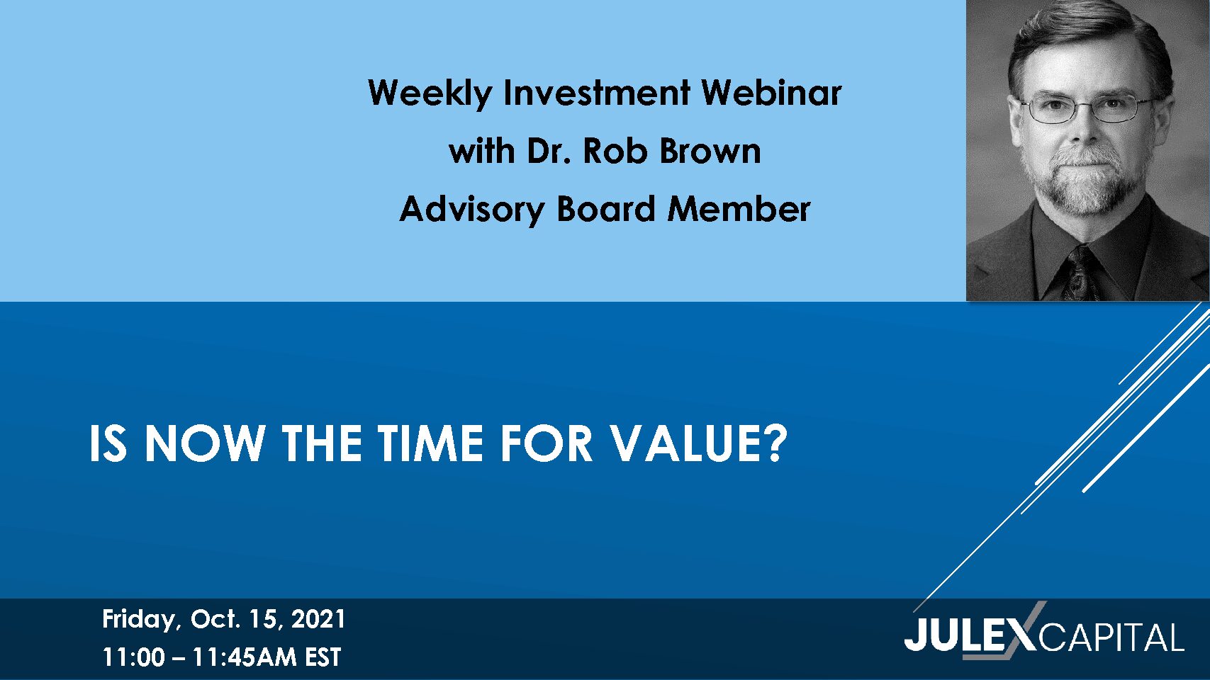This presentation is part 50 of our weekly webinar series with our Advisory Board member Dr. Rob Brown. In this presentation, Rob examines value stocks at this point in time.