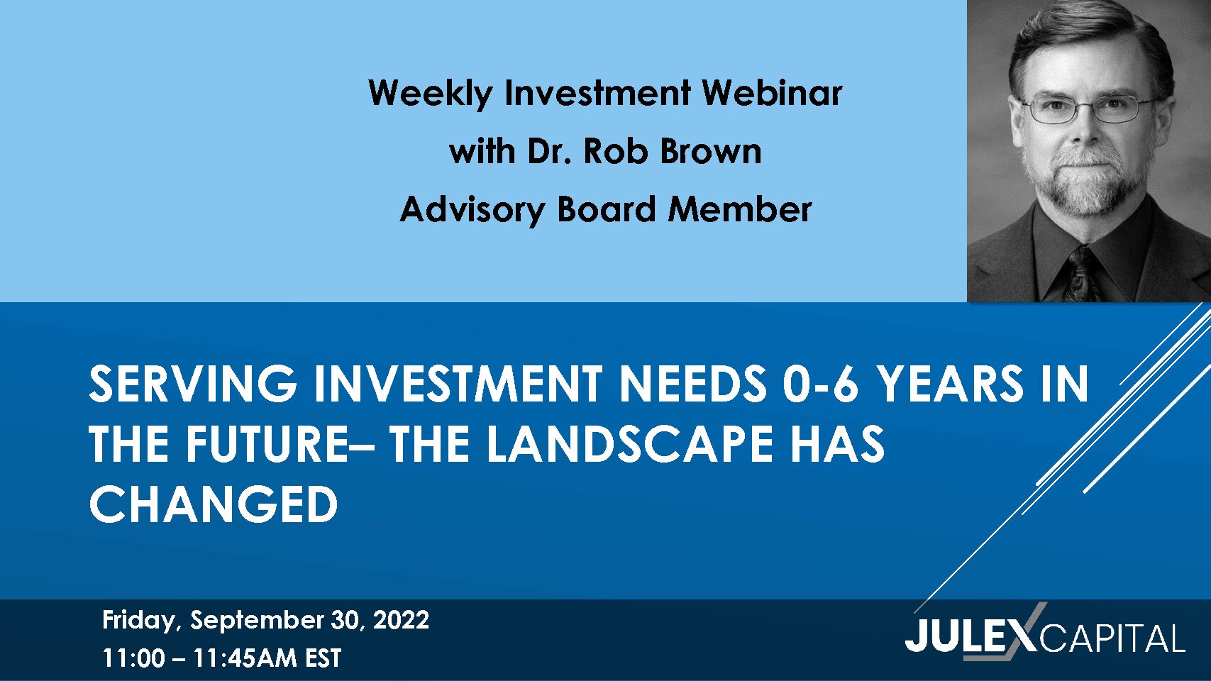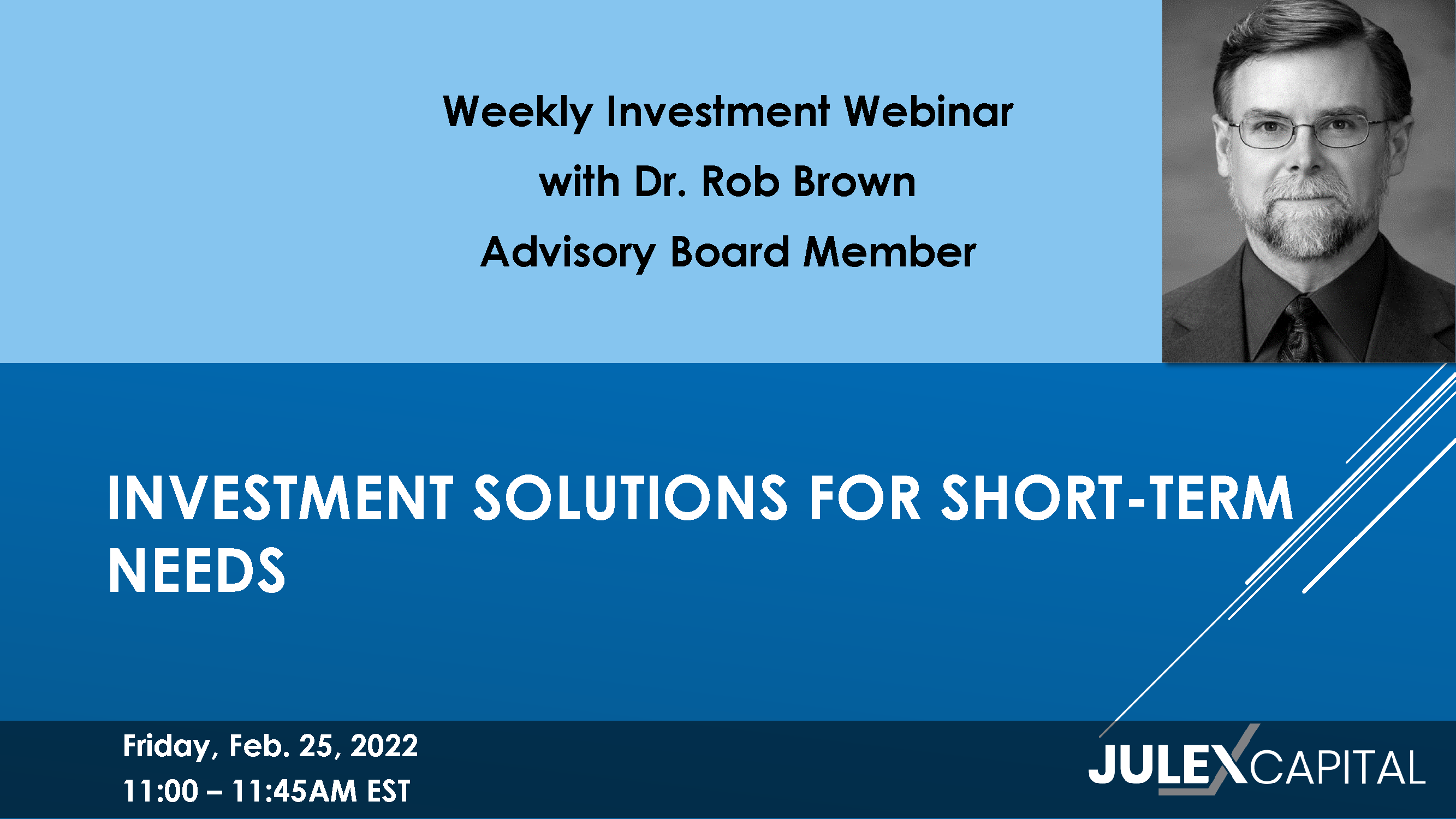 This presentation is part 76 of our weekly webinar series with our Advisory Board member Dr. Rob Brown. In this presentation, Rob talks about investment management for short-term needs.