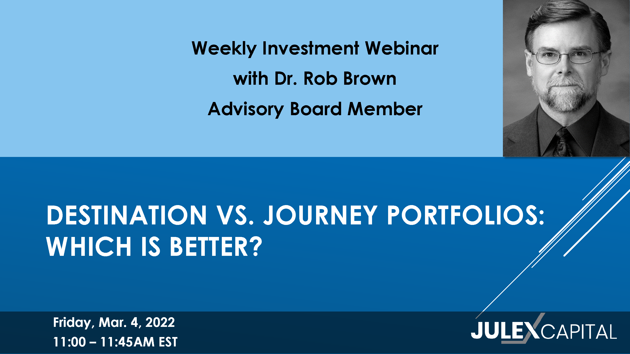 This presentation is part 89 of our weekly webinar series with our Advisory Board member Dr. Rob Brown. In this presentation, Rob talks about target date funds.
