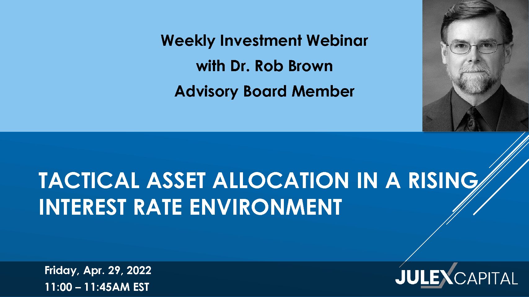 This presentation is part 82 of our weekly webinar series with our Advisory Board member Dr. Rob Brown. In this presentation, Rob talks about TAA strategies during rising rate environments.