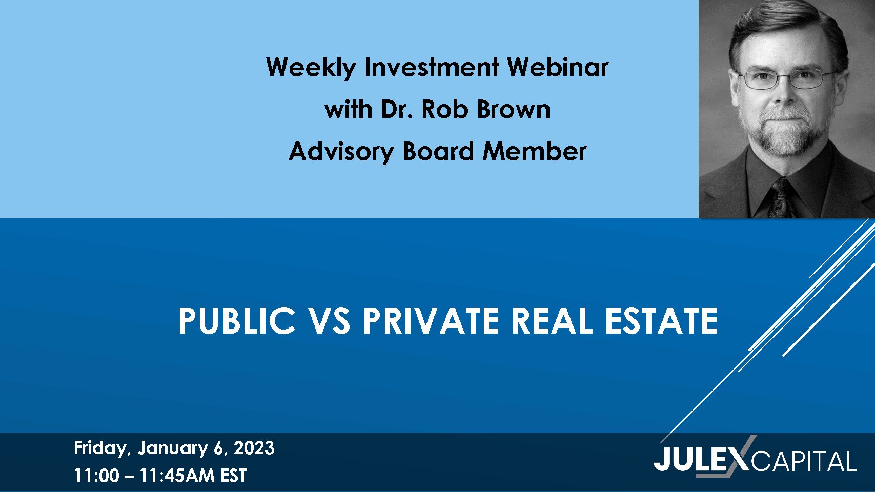 This presentation is part 94 of our weekly webinar series with our Advisory Board member Dr. Rob Brown. In this presentation, Rob talks about the fundamental differences between public and private real estate opportunities.